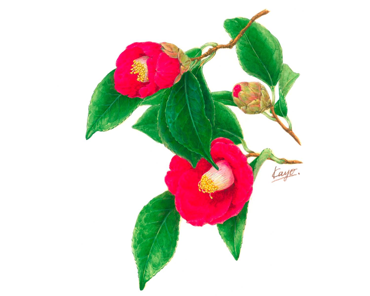 花瓶や背景は入れず、植物だけをエンピツでスケッチし、アクリル絵の具で着色します。