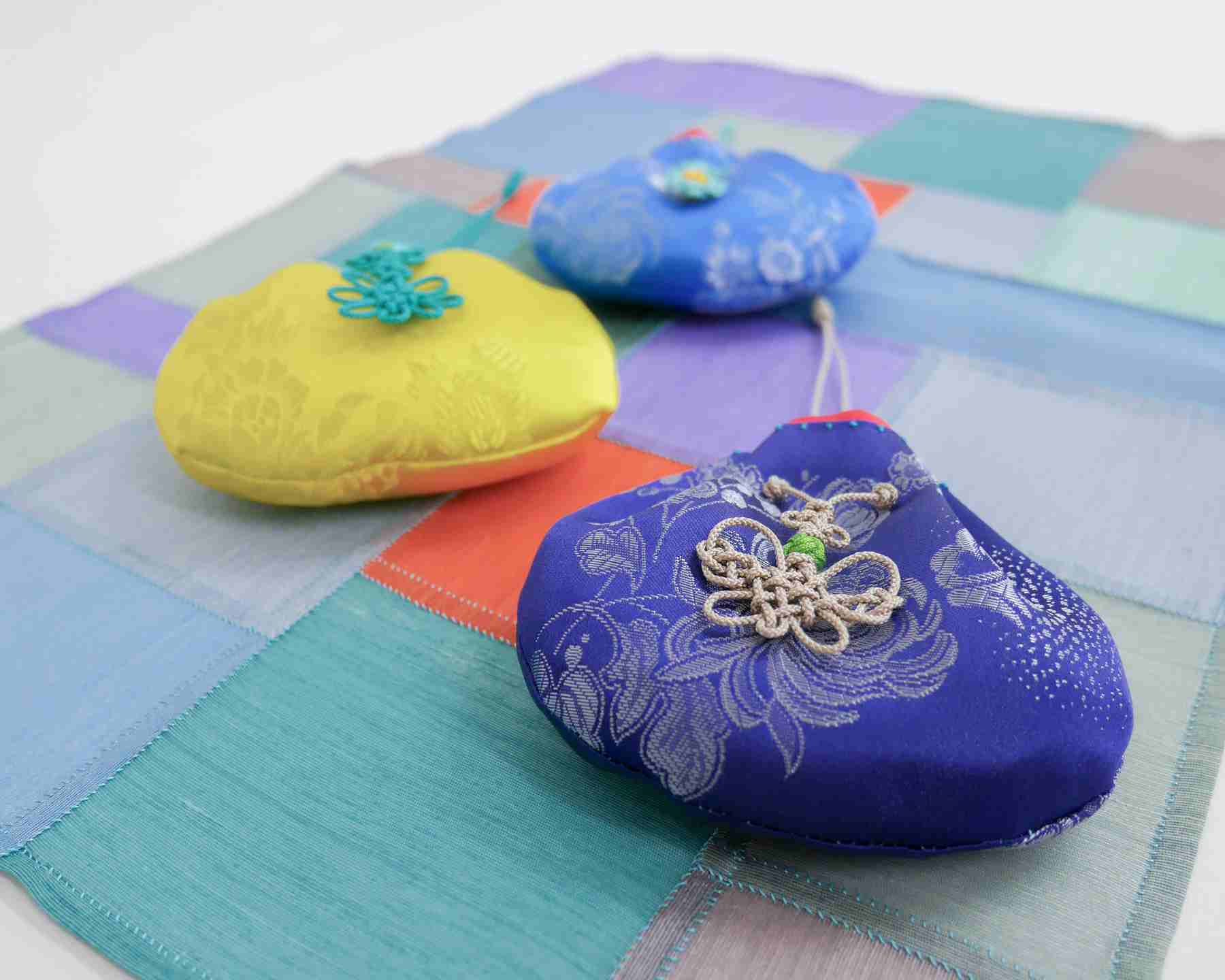 シルクや麻布を使ってポジャギや小物を作ります。布の切れ端を繋ぎ合わせていくと素晴らしい作品へと姿を変えていきます。特に一枚仕立てで仕上げるポジャギは光を通す布のステンドグラスです。