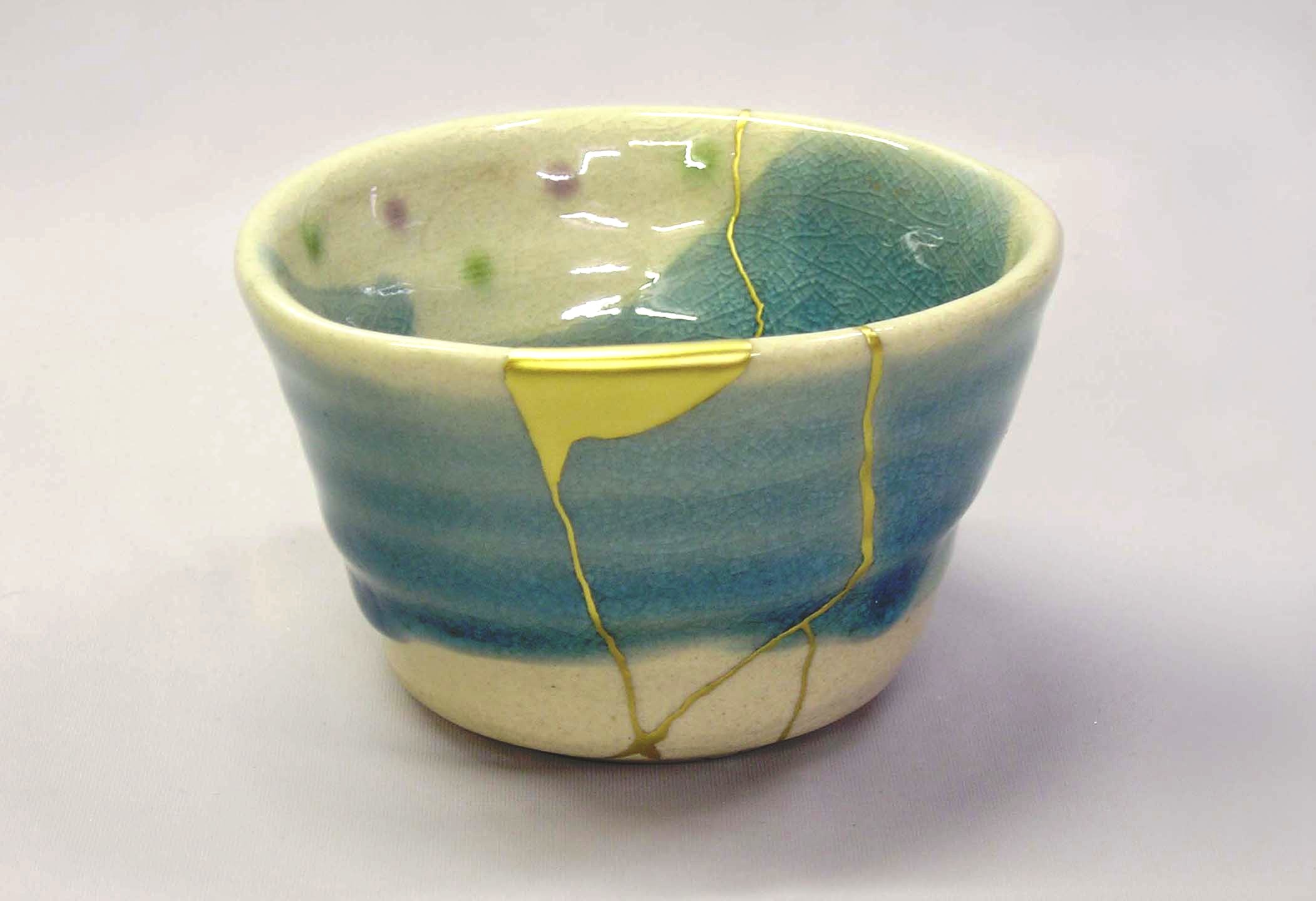欠けた器を修繕し、金仕上げします。 ■ご自身の欠けた器をお持ちいただくことはできません。体験ではみなさま どんなものかを知っていただくためにしていただき、本講座でご自身のもの を修繕していただきます。
